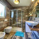 Tot de badkamerfaciliteiten van Pax Houses villa behoren ook een bidet, een inloopdouche en een apart toilet. Een haardroger en badlakens zijn inbegrepen voor extra comfort.